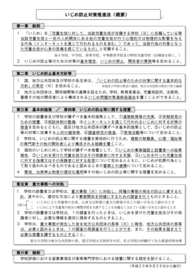 画像:いじめ防止対策推進法の概要(出典:文部科学省