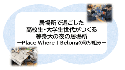 若者にとっての居場所についての定義はさまざまですが、私は「ありのままの自分をまるごと受け入れてくれる」「大人になるための準備をする」という2点を実現する空間や人間関係であるという定義がしっくりきています。