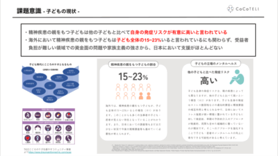 メンタルヘルス不調などの世代間連鎖が実際に起きていることを考えると、この点に対する予防的アプローチは必要だと思っていて、CoCoTELIでは今後こうしたアプローチにも挑戦していきたいと考えています。