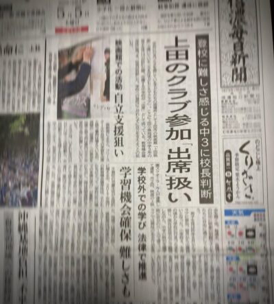 新聞記事の一面に取り上げられた「映画館登校」(画像:うえだシネマクラブ